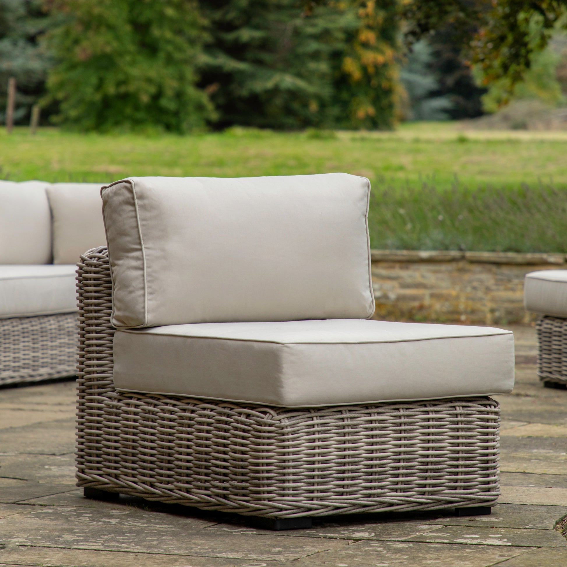 This 1-seater module is designed for use with the matching corner lounge set to extend the sofa. It is crafted from 9mm full rounded weave rattan with an aluminium frame and extra thick showerproof cushions.